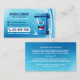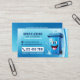 Moderne, berufliche Müllreinigungsdienstleistungen Visitenkarte. Das Design verfügt über einen blauen Cartoon-Rollstuhl mit einem Smiley auf einem dunkelblauen Hintergrund. Umfasst den Firmennamen, die Kontaktdaten, die Telefonnummer und die detaillierte Servicebeschreibung auf der Rückseite. Ideal, um Ihre Reinigungsdienste mit einer freundlichen und beruflichen Touch zu fördern.