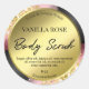 Berufliche Schwarz-Rosa-Gold-Body-Scrub-Labels. BITTE BEACHTEN SIE: Bei der Herstellung dieser Aufkleber werden keine Glitzer oder Folie verwendet, sie leuchten nicht oder reflektieren keine Farbe.