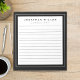 Berufliches Notizblock mit minimalistischem Design in einer Schwarz-Weiß-Farbpalette mit hellgrauen Akzenten. Individuelle Name und Titel, Rolle oder benutzerdefinierter Text auf einem einfachen, weißen Hintergrund, gerahmt durch einen schwarzen Rahmen. Personalisieren Sie die Eingabe mit den angegebenen Feldern, oder wenden Sie sich mit der Schaltfläche 'Nachricht' an den Designer, um Hilfe zu erhalten.