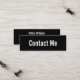 Diese kleine schwarze Visitenkarte sagt "Kontakt mir" auf der Vorderseite der Visitenkarte. Die Rückseite hat vier Zeilen Text für Ihren Namen und Ihre Kontaktinformationen, wie Ihre Telefonnummer, E-Mail-Adresse und/oder Social Media Handle. Alle Texte können bearbeitet oder gelöscht werden.