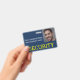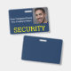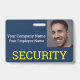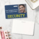 Dieses Abzeichen mit individueller Identifikation enthält einen gelben "SECURITY"-Titel, der über den unteren Teil auf einem blauen Hintergrund aufgedruckt ist. Auf der rechten Seite befindet sich ein Beispiel-Foto für den Sicherheitsschutz, das Sie personalisieren können, um Ihre eigene Foto-ID einzufügen. Der Firmenname und der Name des Mitarbeiters werden auf das links Bild gedruckt.
