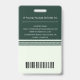 Projektsicherheit und Klarheit mit diesem individuell anpassbaren Professional ID Abzeichen. Dieses Abzeichen wurde für professionelle Unternehmen, Führungskräfte und Teamleiter konzipiert und verbindet modernen Stil mit Funktionalität, um eine nahtlose Identifikation in jedem Arbeitsplatz zu gewährleisten. Merkmale: (1) Vorderseite: Hervorragende Anzeige des Stellentitels, des Mitarbeiternamens und eines beruflichen Fotos zur eindeutigen Identifizierung. (2) Zurück: Enthält Kontaktdaten für eine einfache Rückgabe und einen funktionalen Strichcode für Scan-Zugriff oder Sicherheitssysteme. (3) Ausgeklügeltes Grün- und Zelliedonfarbschema mit eleganten Streifen für ein poliertes, modernes Aussehen. (4) Dauerhafte, leichte Bauweise, geeignet für den täglichen Gebrauch mit Lanyards oder Abzeichen Clips.