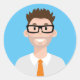 Cartoon-Bild eines beruflichen Arbeiter-Charakter mit Brille, Shirt und Krawatte. Alle Elemente können verschoben, verändert und alle Farben geändert werden.