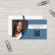 Ein Imitat blauer Glitzer Sets im Hintergrund dieses Visitenkartendesigns mit einem Platzhalter für das Foto auf der verlassen mit Vorlagenname und QR-Code auf der rechten Seite. Die Rückseite beinhaltet ein abgestimmtes Design und Farben mit Textfeldern für den Firmennamen und Details. Ersetzen Sie das Platzhalter-Foto durch Ihr Foto im vertikalen Format und Ihren QR-Code auf der Vorderseite. Füllen Sie die Vorlagenfelder aus, oder klicken Sie auf Anpassen, um den gewünschten Stil, die gewünschte Größe und Schriftart auszuwählen. Verwenden Sie Ihren QR-Code, um Kunden auf Ihre Website, Rezensionen, Fotos oder andere Spezialseiten zu schicken. Das Platzhalter-Foto ist gerne pixabay.com.