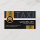 Ein kreatives Design mit zwei Säulen, eine grau, die andere schwarz. Sie wird durch eine weiße Linie abgegrenzt und durch sieben vertikale gelbe Linien in den oberen und unteren Ecken der Karte hervorgehoben. Oben befindet sich ein goldenes Taxi-Logo, das Sie mit einem überdimensionalen "TAXI"-Slogan verwenden können, mit dem Sie Ihre eigenen Bedürfnisse an den Anzug anpassen können. Danach folgen Ihr Name und Ihr Jobtitel mit den Kontaktdaten in der Nähe der Kartenbasis.