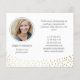Doppelseitiger Flyer für einen beruflichen Fotografen, wo Sie Ihre Arbeit in einer Foto-Collage mit Platz für sechs Ihrer Fotos präsentieren können. Fügen Sie Ihren Namen und Ihre Spezialität oder Titel oder Service auf dem Cover hinzu. Auf der Rückseite finden Sie Imitate goldene Konfetti, ein Profil-Foto von sich selbst und Ihre Kontaktdaten in Bleistift grau.