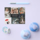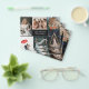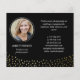 Doppelseitiger Flyer für einen beruflichen Fotografen, wo Sie Ihre Arbeit in einer Foto-Collage mit Platz für sechs Ihrer Fotos präsentieren können. Fügen Sie Ihren Namen und Ihre Spezialität oder Titel oder Service auf dem Cover hinzu. Auf der Rückseite finden Sie Imitate goldene Konfetti, ein Profil-Foto von sich selbst, und Ihre Kontaktdaten in Weiß vor einem schwarzen Hintergrund.