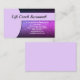 Schwarze Ober- und lila Glitzer-Set an der Vorderseite dieses Visitenkartendesigns, das auf Geschäftsdetails ausgerichtet ist. Füllen Sie die Vorlagenfelder aus, oder klicken Sie auf Anpassen, um den gewünschten Stil, die gewünschte Größe und Schriftart auszuwählen. Der leere Rücken in einem passenden pastellfarbenen lila ermöglicht Raum für persönliche handgeschriebene Notizen.