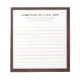 Ein berufliches Notizblock mit einem schlichten, modernen Design. Individuelle Name und Titelposition Rolle und Unternehmen oder Text auf einem einfachen, weißen Hintergrund gerahmt in Oxblut rot mit goldenen Akzenten präsentiert. Personalisieren Sie die Eingabe mit den angegebenen Feldern, oder wenden Sie sich mit der Schaltfläche 'Nachricht' an den Designer, um Hilfe zu erhalten.