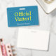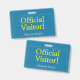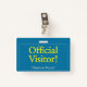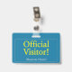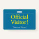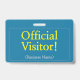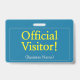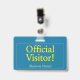 Dieses berufliche Abzeichen-Design enthält die Meldung "Offizieller Besucher!" und einen benutzerdefinierbaren Firmennamen oder eine andere benutzerdefinierte Nachricht. Es verfügt auch über einen Single-Rahmen mit abgerundeten Ecken. Ein Abzeichen wie dieses könnte verwendet werden, um anzuzeigen, dass ein Besucher oder Gast an einem Arbeitsplatz dort sein darf. [~Z0000307]