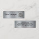 Minimal silberne Imitate gebürsteten Metall berufliche Mini-Visitenkarte mit Ihrem Namen in einem fett, stilvollen Skript. Fügen Sie die URL-Adresse Ihrer Website hinzu, um einen scannbaren QR-Code zu erstellen. Auf der Rückseite passen Sie zusätzlichen Text an (wie E-Mail, Telefonnummern, Firmenname und Postanschrift).