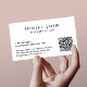 Elegante berufliche Visitenkarte mit Namen, Titel und Kontaktinformationen (wie E-Mail, Telefonnummern, Firmenname oder Firmenadresse und Straßenadresse) in einfacher und moderner Schrift. Geben Sie eine URL-Adresse ein, um einen skalierbaren QR-Code zu erstellen, der mit Ihrer Website, Ihrem Profil in sozialen Medien oder einer anderen Plattform verknüpft ist, die Ihre Arbeit präsentiert. Dies erleichtert es anderen, Ihre Erfahrung zu erforschen. Passen Sie zusätzlichen Text auf der Rückseite an oder verließ Sie Leerzeichen.