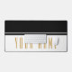 Dieses moderne, elegante Design besticht durch einen schwarzen, obersten Farbblock mit dem passenden, schwebenden Pinstreifen vor einem knackigen, weißen Hintergrund. Der optional hohe, schlanke, goldbraune Text in der weißen Unterhälfte kann personalisiert werden.