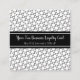 Diese viereckige Visitenkartenfront weist einen weißen Hintergrund mit einem Muster schwarz umrissener Kreise auf. Es ist als Visitenkarte für Geschäftstreue konzipiert. Die Lochkreise sind auf der Rückseite mit einer Dankesbotschaft nummeriert. Füllen Sie die Vorlagenfelder mit Ihren Informationen für die Vorder- und Rückseite aus, ENTFERNEN Sie den hinteren Text, oder klicken Sie auf Anpassen, um einen Schriftstil, Schriftgröße und -farbe auszuwählen, den Sie bevorzugen.