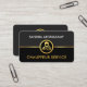 Ein graues und schwarzes Cover wird durch eine goldene Linie in der Nähe des Kartenzentrums abgegrenzt. Das Reiten auf dieser goldenen Linie des Erfolgs ist ein goldenes Chauffeur-Logo, das Sie benutzen können. Oben auf der Karte liegt Ihr angesehener Name mit dem goldenen Firmennamen in der Nähe des Basars. Auf der Rückseite, in einem grauen Cover, befindet sich das goldene Logo oben, gefolgt von Ihrem angesehenen Namen und den Kontaktdaten. Ein berufliches Design für Chauffeur und Fahrer. #chauffeur #limoservice #limo #designateddriver #rideshare #privatedriver #driver #taxiride #taxiservice #taxiservice #taxis #zazzlemade
