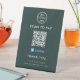 Berufliche Venmo QR Code Scan to Pay Logo Dunkelgrün Boost dein Unternehmen kontaktlose Zahlungsoptionen mit diesem beruflichen Venmo QR Code Scan zu zahlen Logo Podestal. Dieses schlichte und stilvolle Schild eignet sich perfekt für die Anzeige an Ihrem Kasse-Schalter, am Restauranttisch oder überall dort, wo die Kunden einfach scannen und bezahlen können. Passen Sie das Design mit Ihrem Firmenlogo an und personalisieren Sie es mit einer Nachricht.