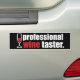Drücken Sie Ihre Sachkenntnis… aus Dieser lustige Weinentwurf für Weinliebhaber liest, "beruflicher Wein-Schmecker" mit einer Grafik eines Glases Rotweins. Vervollkommnen Sie für Weinenthusiasten und -kenner.