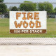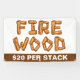 Dieses Banner ist bereit, um mit Ihren eigenen Preisinformationen angepasst zu werden. Enthält die Meldung FIRE WOOD mit den Worten FIRE WOOD, die in Buchstaben geschrieben sind, die wie Holzstämme aussehen.