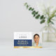 Mit diesen stilvollen personalisierten Visitenkarten machen Sie einen ersten Eindruck! Eine elegante Vorlage mit Ihrem ID-Foto, Namen, Jobtitel, Firmenlogo, Kontaktinformationen und einem scannbaren QR-Code. Der gesamte Text kann an Ihre geschäftlichen Bedürfnisse angepasst oder gelöscht werden. Dieses anpassungsfähige Design würde viele verschiedene Berufe Anzug haben, darunter Firmenangestellte, echte Anwesen-Agent, Notare, Kreditvertragsvertreter, Kleinunternehmen und mehr! Druckfarben: dunkelblaue Marine und Weiß mit einem goldenen Farbverlauf.