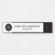 Zeigen Sie Ihre Marke mit einem individuellen Türschild, das Ihr Firmenlogo mit Namen und Beruf in einem eleganten schwarzen Serif-Schriftart auf weißem Hintergrund zeigt. Ideal für Bürotüren, Tagungsräume, Empfang, Arbeitsräume und berufliche Räumlichkeiten.