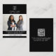 Eine moderne, minimalistisch schwarze personalisierte Visitenkarte, die sich perfekt für jedes Geschäft eignet. Passen Sie das Firmenlogo, Text, Foto und QR-Code an und machen Sie es zu Ihrem eigenen. Ideal für alle Unternehmen, die ein Foto als Teil ihrer Visitenkarte für Werbezwecke einschließen möchten. Ideal für Expos, Messen, Shopverkauf, Werbeaktionen und Marketing etc.