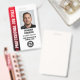 Berufliches Abzeichen für Mitarbeiter mit Profil Foto und Firmenlogo. Diese bearbeitbare Vorlage kann mit einem Foto, Namen, Jobtitel, ID-Nummer, Firmennamen, QR-Code und Firmenlogo für das Branding personalisiert werden. Modernes Design mit Gradientenstreifen und einem sauberen Schriftart. Es bietet vollständig anpassbaren Text für Ihre Geschäftsmarke. Ideal für verschiedene Arbeitsorte und Rollen, wie zum Beispiel Sicherheitskräfte, Aufbewahrungssicherheit, private Sicherheit, persönliche Leibwächter, offizieller Türsteher, Veranstaltungsteam, Firmenmitarbeiter, Einzelhandelsassistenten, medizinisches Personal, kleiner Geschäftsausweis, Tagungsnamen und vieles mehr! Druckfarben: schwarz, weiß und rot. Bestellen Sie die Kollektion für beliebtere Sicherheitsproduktideen und -materialien online.