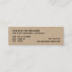 Eine beruflich aussehende moderne Kraftsackpapier-Visitenkarte mit Ihrem Namen auf der Vorderseite in einer handgeschriebenen Schriftart-Skript-Kalligrafie und all Ihren Details auf der Rückseite in einem leicht lesbaren Blocktext.