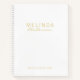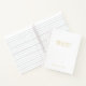 Berufliches modernes Notebook mit Namen in goldfarbenem, modernem Sans serf Schriftart Stil und Nachname in goldfarbenem, modernem kalligrafischem Schriftart auf weißem Hintergrund.