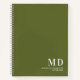 Ein modernes berufliches Notizbuch in einem üppigen Olivgrün mit Ihren Monogramm-Initialen und Ihrem Firmennamen in weißer Schrift Perfekt für Ihre Zuhause oder Ihr Büro. Ideal für Designer, Berater, Anwälte, echte Anwesen-Agent oder andere berufliche Geschäfte.