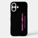 Minimalistischer Schwarz Soli Farbhintergrund und Neon Pink modernen Schriftart iPhone 16 Fall. Personalisieren Sie Ihre individuelle Verwendung. Klassisches Design | Elegantes Produkt | Trendige Farben | Stilvoll und modern | Berufliches Geschäftsdesign