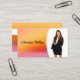 Diese orangefarbene Vorderseite dieses Visitenkartendesigns verfügt über einen Platzhalter auf der rechten Seite und einen Vorlagennamen auf der links und ist für viele Berufsgruppen ausreichend generisch. Auf der Rückseite befinden sich ein abgestimmtes Design und Farben mit Textfeldern für den Firmennamen und die Details. Ersetzen Sie das Platzhalter-Foto durch das Bild im vertikalen Format auf der Vorderseite. Füllen Sie die personalisierbaren Felder aus oder bearbeiten Sie mit dem Designwerkzeug eine Schriftart, Schriftgröße und -farbe aus, die Ihnen gefällt.Das Platzhalter-Foto ist freundlich pixabay.com.