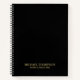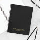 Berufliches Notebook mit individuelle Name und Text im klassischen Serif-Schriftart auf schwarzem Hintergrund. Bitte beachten Sie: Die Details der Folie werden im Kunstwerk simuliert. Bei der Herstellung dieses Produktes wird keine Folie verwendet.