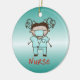 Helle Teintfrauenkrankenschwester in blauem medizinischem des Aqua scheuert sich und Stethoskop auf blauem Hintergrund macht eine niedliche Feiertagsverzierung für das Gesundheitswesen beruflich in Ihrem Leben. Fertigen Sie es mit Namen und Datum Ihrer Krankenschwester auf der Rückseite besonders an. Schaffen Sie ein Andenkengedächtnis von der Verzierungs-Zentrale.
