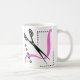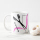 Beschäftigte Scheren, Faden und Knöpfe, die Thema Kaffeetasse