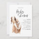 Baby Dusche Aquarellbild einfache Skript. Natürliches Rostgeschlecht unbekannte moderne Babydusche einladen. Teil einer Indie-Sammlung.