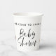 Baby Dusche Aquarellbild einfache Skript. Das natürliche Rostgeschlecht unbekannter moderner Babydusche Party-Dekor bevorzugt das Papier-Becherdesign. Teil einer Indie-Sammlung.