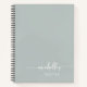Minimalistisch Sage Green Elegant Girly Monogram Name Signature Script Custom Personalisiert Cookbook Rezept Notebook. Diese Design mit Ihrem Vornamen in einem hübschen handgeschriebenen Stil Swash Schwanz Schriftart Typografie auf schlanke grüne oder staubgrüne Farbe Hintergrund. Diese sind einfach zu anpassen und können als Cookbook, Rezeptplaner und mehr verwendet werden. Auch große stilvolle feminine Geschenke zum Geburtstag, Hochzeit, Muttertag, Brautparty, Jubiläum und für alle, die Lieben glamourösen Stil.