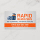 Berufliche Vorlage für Junk Removal & Hauling Business Card - perfekt für die Beseitigung von Junk-Mülleimer, Speditionsfirmen, die Beseitigung von Schutt und Müll und die Reinigung von Unternehmen. Die Visitenkarte zeichnet sich durch kühnen Designs, eine ausgeprägte Typografie und branchenrelevante Grafiken aus. Ideal für Unternehmen, die sich auf die Beseitigung von Öko und kommerziellem Müll, Möbelschleppen, die Entsorgung von Geräten, die Reinigung von Bauschutt und den recycle von spezialisiert haben.