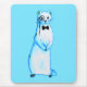 Funny Freret Mousepad mit einer Aquarellillustrierung eines niedlichen weißen Frettchen, der eine Bogen-Krawatte und ein Monokel hat. Dieses niedliche Freret Design hat eine fröhliche hellblaue, anpassbare Hintergrundfarbe.