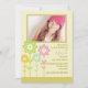 Vier besondere Blüten wachsen in einer Linie. Jeder in seiner Farbe bringt Sonnenschein! Eine schöne Einladung für eine Geburtstagsfeier der Teenager. Fügen Sie einfach ihr Lieblings-Foto in das doppelte gerahmte Fenster.