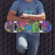 Eine phantastische, klassisch erstaunliche Geschenkidee für alle Männer und Damen Skater, die Skateboarden über den Umschlag und moderne Statuen lieben. Die farbenfrohe Farbenmischung und das phantastische Skateboard machen den Spaß im Freien lebendig