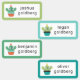 Kaktus Kleidungskleber für Ihre Kinder mit niedlichem Kakteen, das in Blume-Töpfen sitzt und Brillen trägt. Jeder Kaktus hat eine Blume auf seinem Kopf wie eine kleine Fürstenkrone. Die Aufkleber sind aquamarin und grün gestrichen.