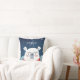 Mit Monogramm Wurfkissen, das perfekt für das Kinderzimmer ist, mit einem gläsernen Eisbär, einem roten Schal um den Hals, stehend zwischen Eis und Schnee. Fügen Sie den Namen Ihres Kindes und die erste in weiß und blau.