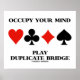 Duplikate Bridge-Spieler werden dieses Poster mit den vier Kartenspielen und dem Sprichwort "Occupy Your Mind Play Duplikate Bridge" genießen. Großartiges Duplikat Bridge Spaß Poster Geschenk für jedes Duplikat Bridge Club!