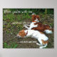 Zwei niedliche Spaniel-Hunde (eine Bretagne, eine gemischte) liegen nebeneinander, einer von ihnen wird von der Tierwelt eingenommen, einer kaut einen Stock. Worte sind: "Wenn ich bei dir bin.. ...die Eichhörnchen scheinen in Reichweite ...Stöcke schmecken besser. Humorvoll und liebenswert.
