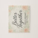Feiern Sie die Liebe auf einzigartige Weise mit unserem "Better Together" Gefallen Brautpuzzle Gefallen. Mit eleganter Kalligraphie, gerahmt von sanften Aquarellfloralen in Weiß- und Salbeitönen, verdoppelt sich dieses Puzzle als sinnvoller Sake und ein lustiger Gefallen für Ihre Gäste. Jedes Puzzle ist mit einem romantischen Hintergrund und der Phrase "Better Together" als zentrales Element konzipiert. Unter der Phrase können Sie mit Ihren Namen und Ihrem Hochzeitsdatum personalisieren und damit jedes Stück zu einer gepflegten Erinnerung Ihres besonderen Tages machen. Dieses Rätsel ist perfekt als unvergessliche Gastgeschenk Hochzeit, Brautparty-Geschenk oder Jubiläumsgebet geeignet und symbolisiert, wie zwei Leben perfekt zusammenpassen. Design: Aquareller Blumenhintergrund mit eleganter Kalligrafie Personalisierung: Individuell definierbare Namen & Hochzeitstermin Verwendung: Gastgeschenke Hochzeiten, Pflaster oder Brautparty-Geschenke Thema: Romantisch, zeitlos und bedeutungsvoll Machen Sie Ihre Hochzeit unvergesslich mit einem Vergnügen, der sowohl spielerisch als auch herzlich ist - denn Liebe ist das vermisste Stück.