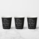 Typografisches Skript moderne einfache monoweiße Text auf einem schwarzen Hintergrund Papier Becher liest besser spät als nie Hochzeit Party. Das moderne Design ist schlicht und personalisiert mit den Namen verspäteter Brautpaare und Bräuche nach dem Party und einem beliebten Hochzeitsfest-Foto von Ihrem Hochzeitstag an der Rückseite. Passende Hochzeitsprodukte und andere Farbvarianten im Geschäft erhältlich. © Design by Sarah Trett for www.mylittleedenweddings.com