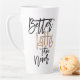 Kaffee Spaß Angebot auf Ihrer Latte Tasse! Ein amüsantes Spiel auf den Wörtern Better Latte than Niemals in einer eleganten Schrift Typografie meist in schwarz und "latte" in einer Kaffeefarbe ...Natürlich!