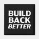 Bauen Sie Back Better Schwarz-Weiß-Magneten demokratischen Party. Moderne, weiße, fette Typografie auf schwarz schlichtem, solidem Hintergrund.