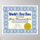 Weltweit das beste Boss Certificate Poster Print. Ein großartiges Zertifikat für Ihren Chef mit vollständig anpassbaren Texten "World's Best Boss", "This is to certificate that:", "Your Boss' Name", "is the best boss in the world. Wir sind mit einem Chef gesegnet, der so gekümmert und gut ist wie du. Wir Liebe Sie!..", "Ihr Name(n) und Text". Dieses einzigartige und persönliche beste Boss Vollfarbdruck ist vollständig anpassbar, fügen Sie Ihre Texte und Bilder! Ein super persönliches Geburtstagsgeschenk oder ein Ruhestandsgeschenk für den besten Boss der Welt!